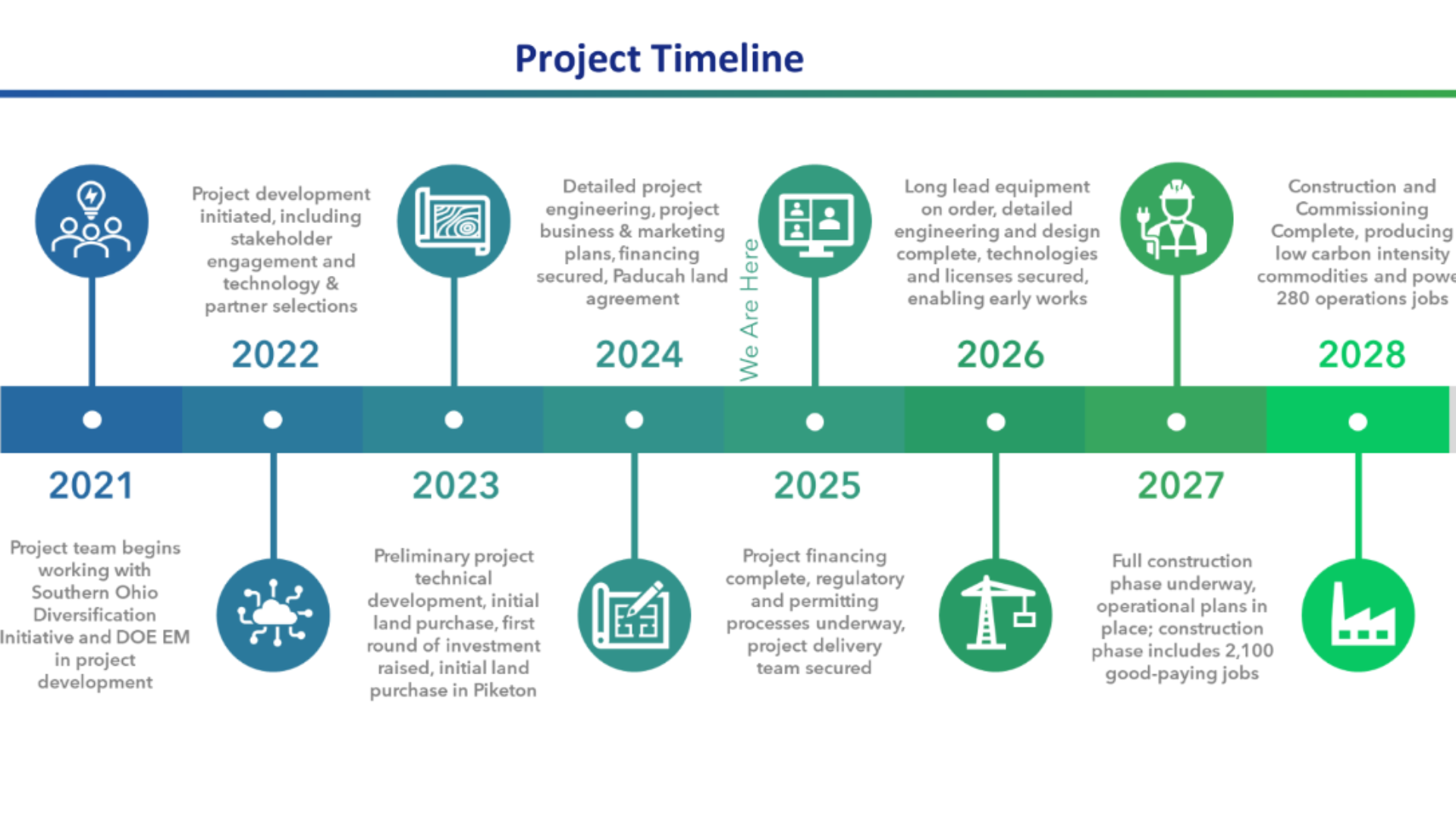 Reindustrialization and reinvestment activities are focused on developing an integrated energy system closed loop manufacturing facility that employs an all-of-the-above energy strategy to generate clean power and hydrogen, expand industry, create jobs, and grow the southern Ohio economy.